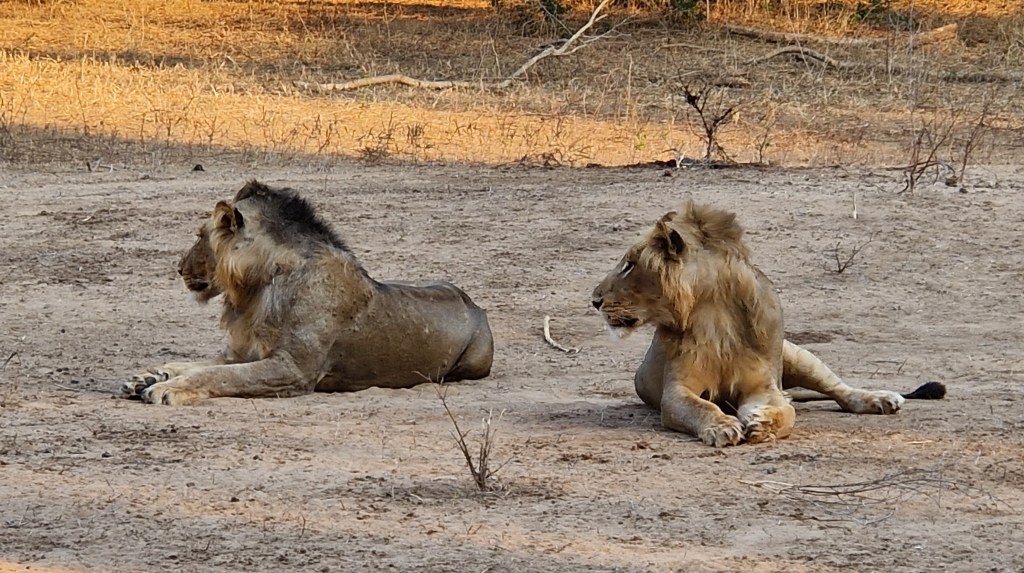 Übung abgebrochen, zurück zum Auto und an einem anderen Ort losgelaufen. Nur damit wir dann zwischen zwei Löwen gelandet sind, die sich brüllend verständigt haben (allerdings weiter weg).