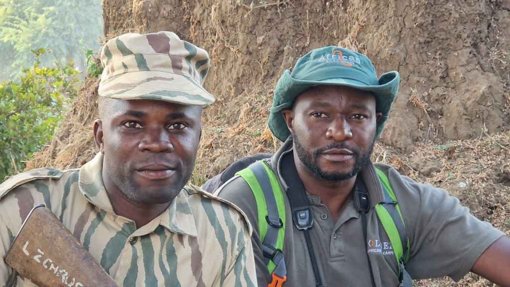 Am Montag machte ich noch eine walking safari mit Colins (Scout) und James (Guide).