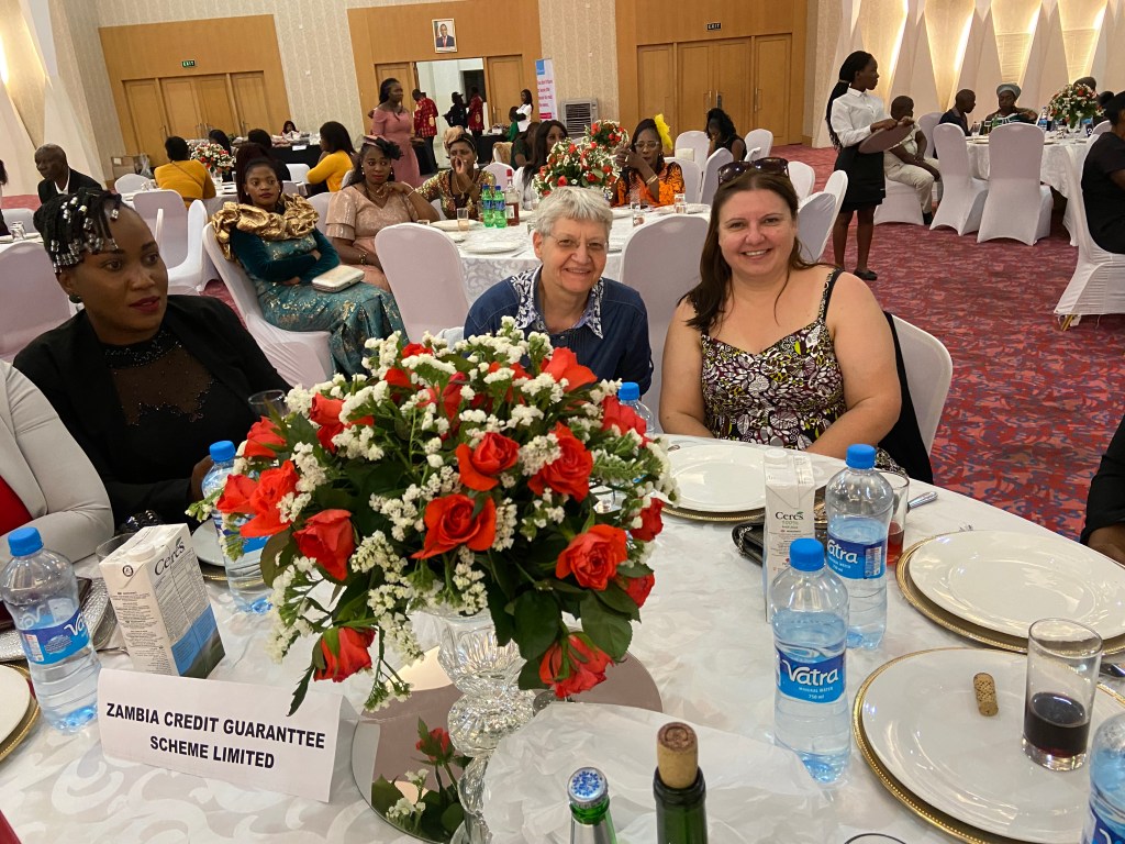 - Ich habe an unserem Tisch ein paar sehr nette Kontakte knüpfen können mit verschiedenen Managern vom Zambia Credit Guaranttee Scheme Ltd., die uns hoffentlich auch für unser Projekt hier in Malambanyama nützlich sein werden. Sie geben Banken Garantien für Geschäfts-kredite, welche diese wiederum an SMEs vergeben.