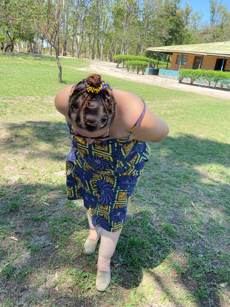Das Ganze hat fast 2 Stunden gedauert. Dabei hab ich die Mädchen besser kennengelernt. Und draussen hat es geregnet. Zum Schluss haben 5 Mädchen gleichzeitig an den Zöpfen gearbeitet. Die Enden werden mit cotton umwickelt. Das nächste Mal probieren wir es mit Extensions, bin schon gespannt. Die Mädels sind die verschiedenen Techniken und Muster Frisuren betreffend sehr kreativ.
