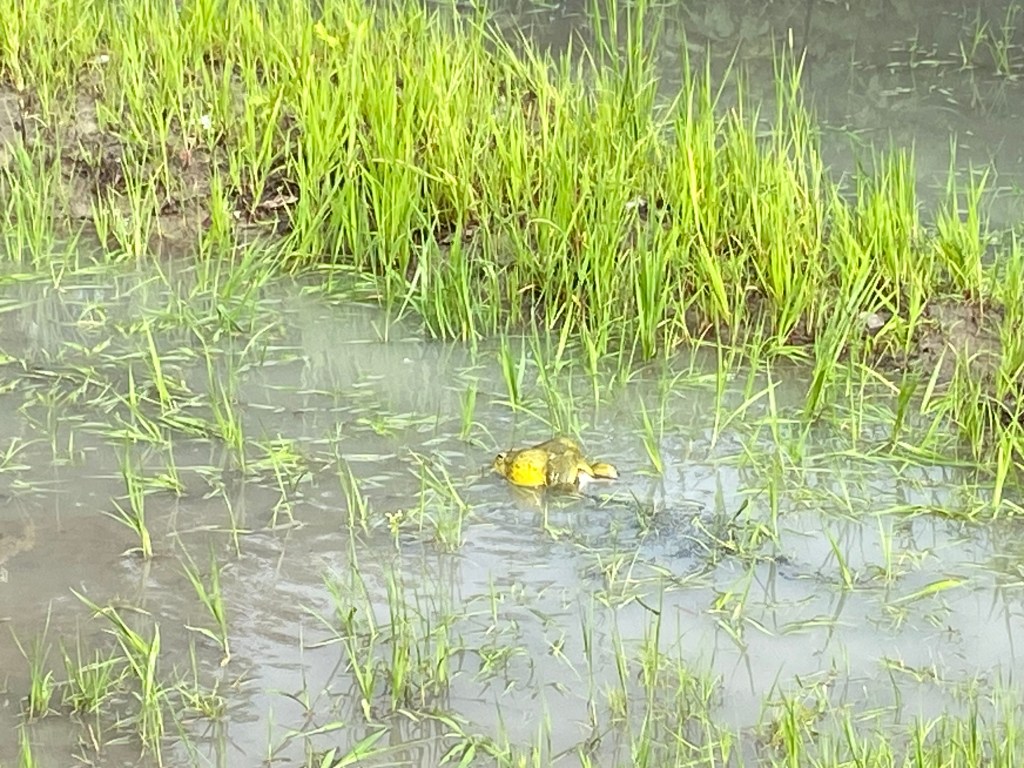 Und dann gibt es jetzt mit den Überschwemmungen eine Vielzahl von verschiedenen Fröschen und Kröten in den unterschiedlichsten Farben, Grössenordnungen und «Gesängen». Am besten gefällt mir der grosse gelbgrüne Frosch und betreffend «Sound» gibt es einen ganz lustigen, der mit seinem «Blubb» an einen Bildschirmschoner erinnert.