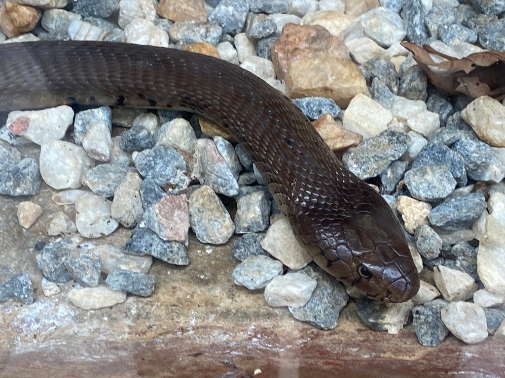 Und dann hätten wir hier noch verschiedene Kobra-Arten, die Puffotter und die Phyton und und und …