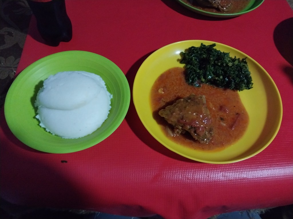 Nshima with Village Chicken and Chinese im Hot Pot Restaurant in Malambanyama