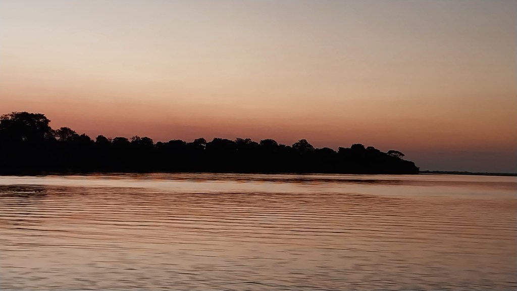 Die Lodge selber ist schlau gebaut. Das Haupthaus ist sehr hoch, nach mehreren Seiten offen, mit Strohdach und dadurch trotz der Hitze in der Sonne innen schön kühl, und mit einem wunderbaren Blick auf den Kafue River und den Sonnen-untergang. Wie ich dieses Farbenspiel liebe. Schade nur, dass es immer so schnell vorbei ist.