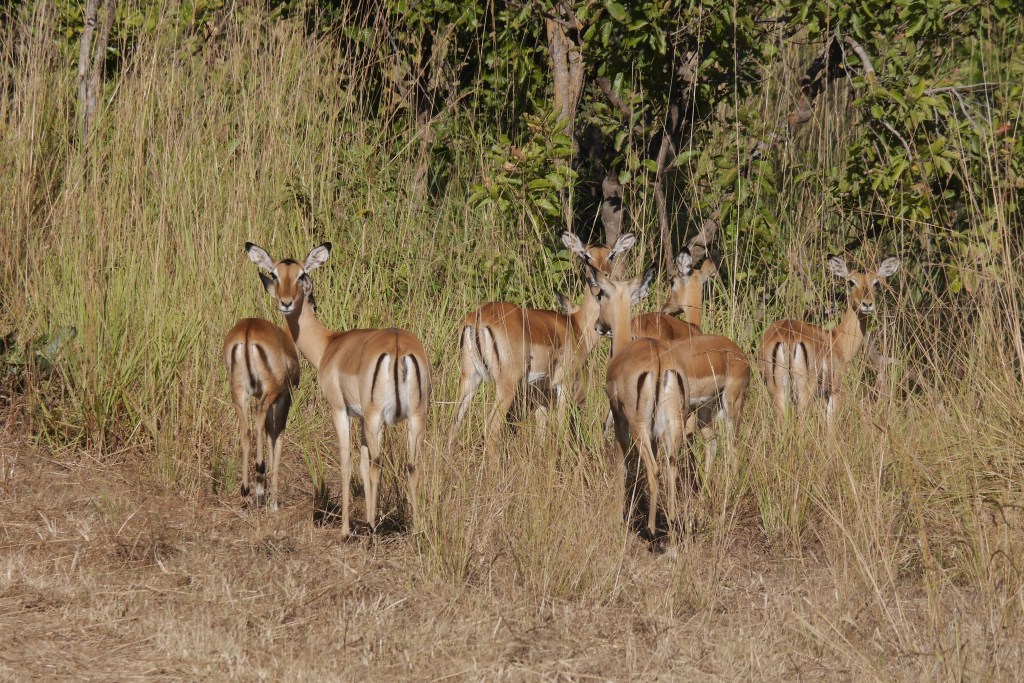 Google Maps sagt 3 Stunden Fahrzeit, zum Schluss sind es 4 Stunden. Sobald ich von der Strasse abbiege in die 10 km lange Zufahrt zur Pinnon Lodge, ist das Auto eingehüllt von Tsetse Fliegen. Ich hasse diese Dinger. Ich bin der einzige Gast in der Lodge. 2 Fahrten mit dem Boot auf dem Kafue am späteren Nachmittag bzw. Abend und 2 Game drives am Morgen.