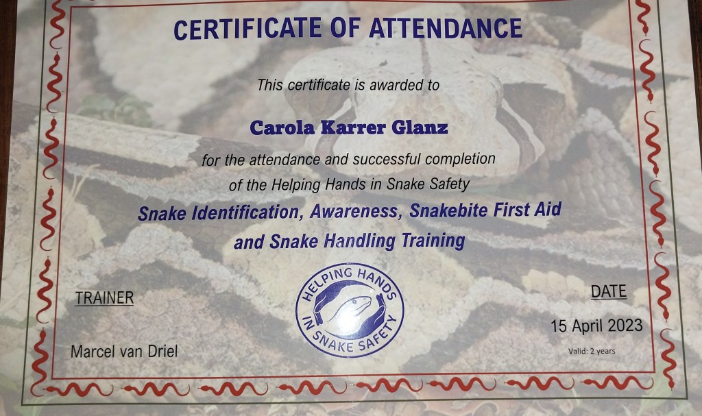 Wer mehr wissen möchte, kann mehr auf der homepage von HHISS (Helping Hands in Snake Safety) lesen.
